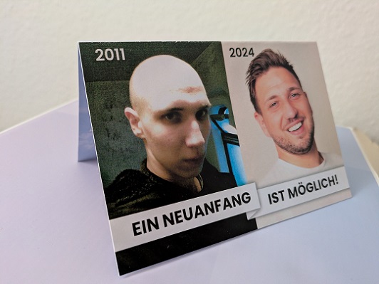 „Ein Neuanfang ist möglich“ soll Obdachlose, Drogenabhängige und Alkoholiker die Hoffnung von einer Beziehung zu Jesus bringen, die ihr Leben wirklich verändert. Auf der Rückseite ist das Interview von Lukas Repert verlinkt, der seine Geschichte erzählt.